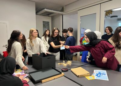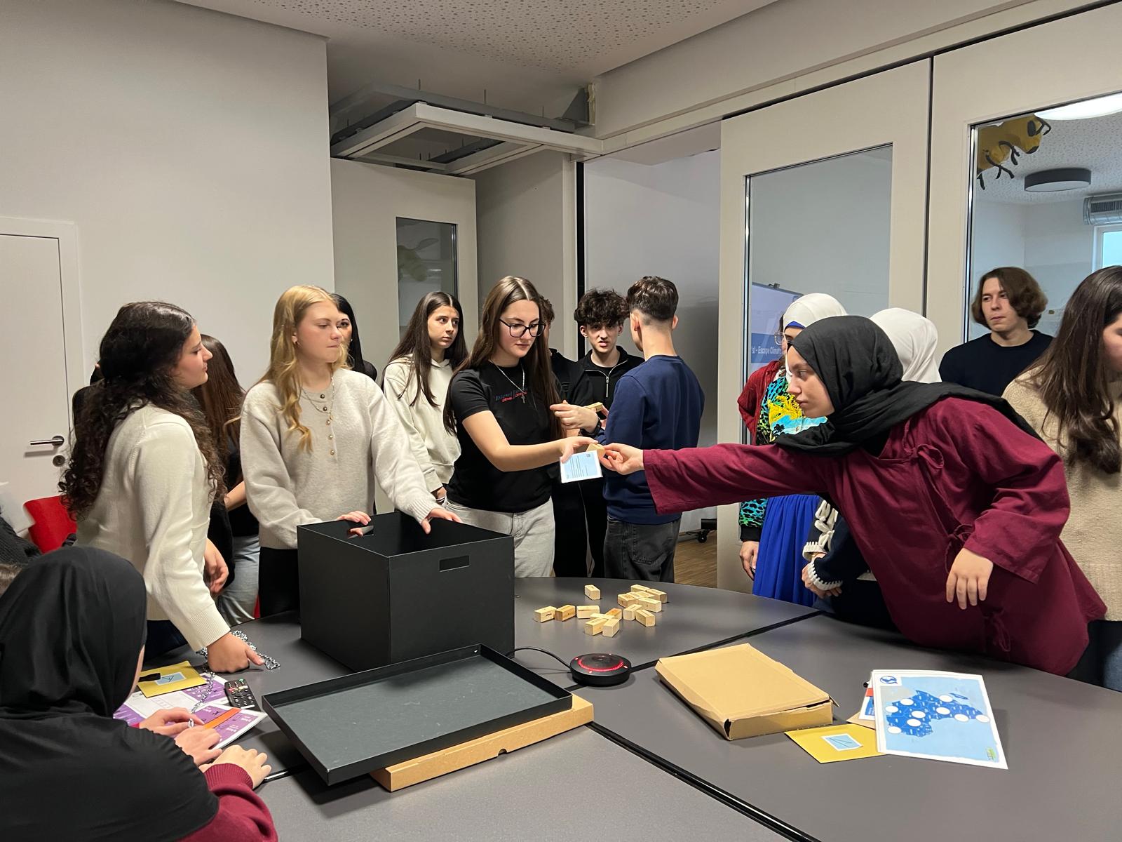 Im Anschluss daran nahmen die Schüler:innen an einem Escape-Room-ähnlichen Spiel teil. Sie erhielten eine verschlossene Box mit einem Code sowie eine Weltkarte. Durch das Lösen verschiedener Hinweise auf der Karte gelang es ihnen, den richtigen Code zu finden und die Box zu öffnen. Diese Aufgabe förderte besonders das logische Denken, die Zusammenarbeit sowie die Kommunikation innerhalb der Gruppe.