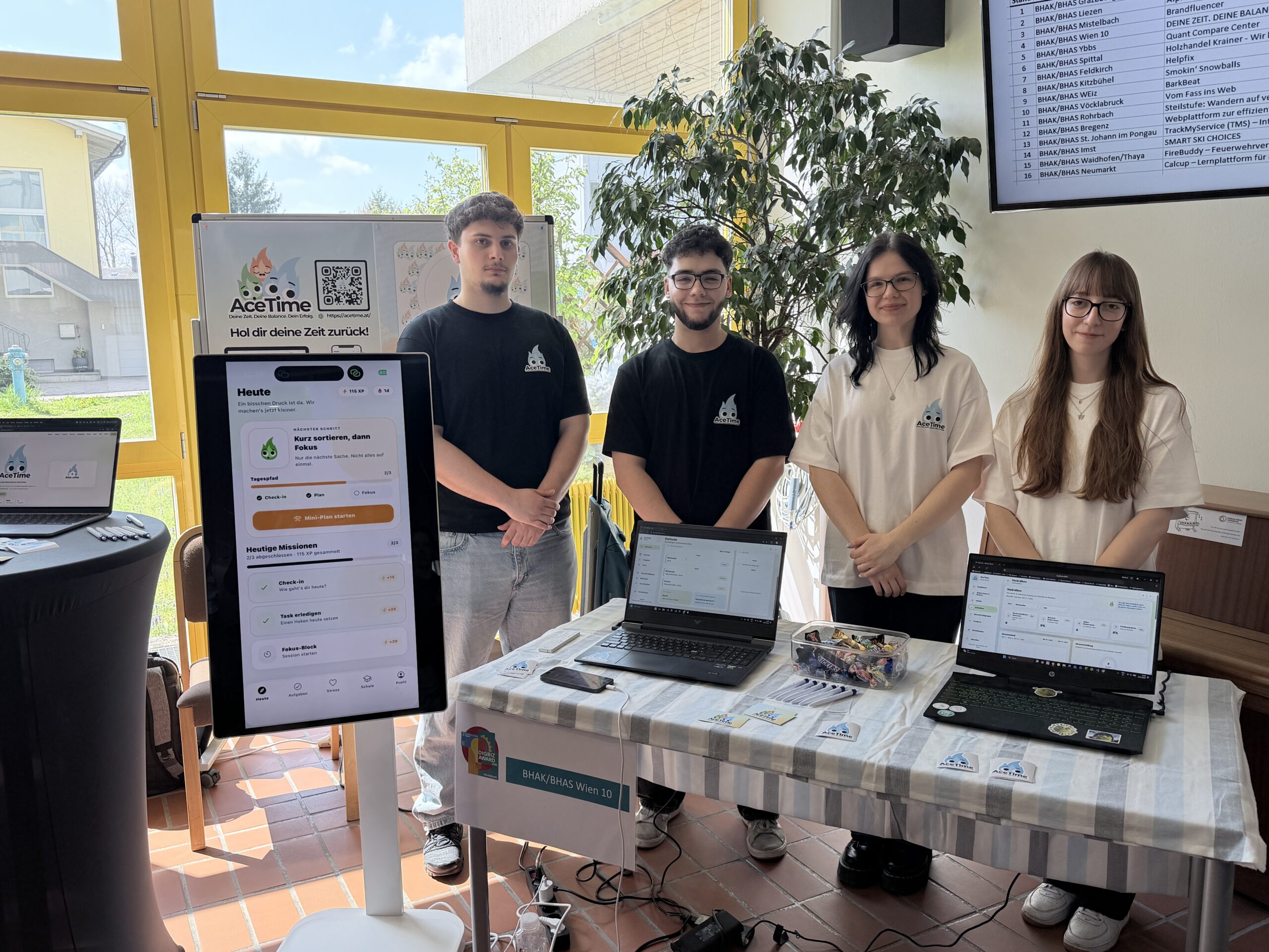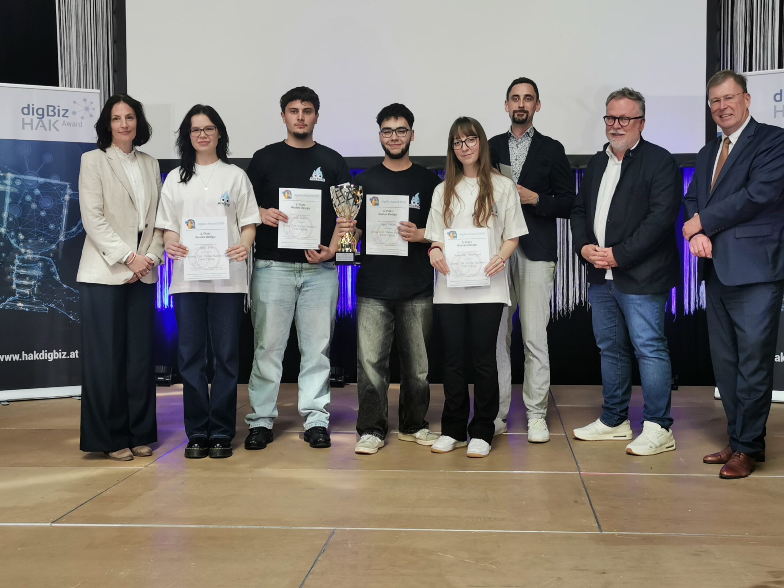 Das Diplomprojekt „AceTime – Deine Zeit.Deine Balance.Dein Erfolg.“ unserer Schülerinnen und Schüler des Digital-Business-Zweiges der BHAK Wien 10 hat beim DigBiz-Award in Vöcklabruck den 3. Platz in der Kategorie Design gewonnen! Ein großes Dankeschön an alle, die dieses Projekt unterstützt haben und eine herzliche Gratulation an unsere Schüler*innengruppe!
