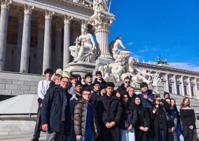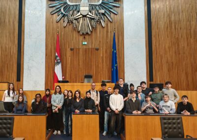 Die Schüler*innen erhielten spannende Einblicke in die Arbeit der Abgeordneten, erfuhren, wie Gesetze entstehen, und konnten hautnah erleben, wie Diskussion, Respekt und Verantwortung in einer Demokratie gelebt werden. Im historischen Sitzungssaal wurde Politik greifbar und verständlich.