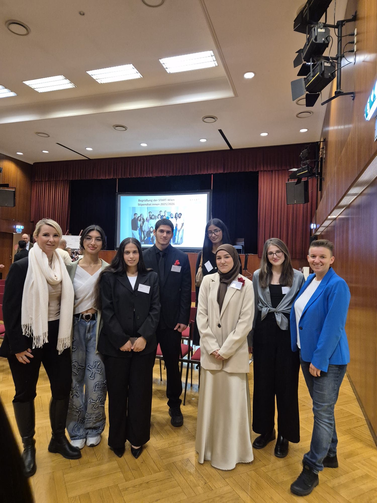 Bei der Begrüßungsfeier des START-Stipendiums Österreich waren auch Vertreterinnen der BHAK Wien 10 mit dabei. Wir freuen uns besonders, dass gleich mehrere unserer Schülerinnen in diesem Schuljahr Teil des Programms sind – einige als neue Stipendiat*innen („Stipis“), andere engagiert im Freundeskreis.