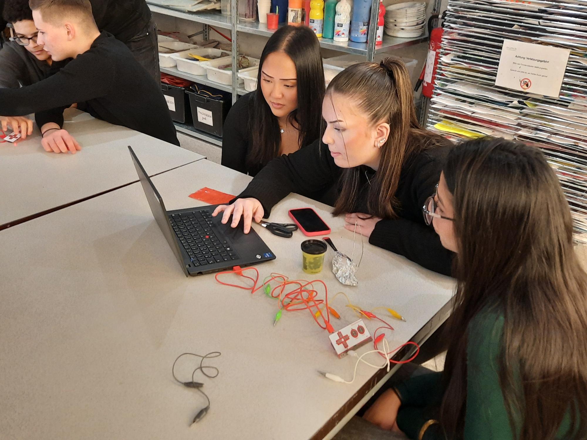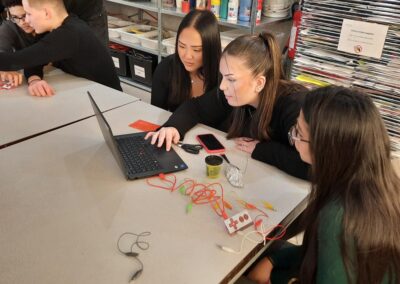 Im Workshop selbst ging es um Rapid Prototyping und darum, wie Steuerungen funktionieren. Wir arbeiteten in Gruppen mit Scratch und Makey Makey und konnten Alltagsgegenstände als Controller verwenden. So haben wir kleine Spiele, Programme und interaktive Projekte entwickelt und getestet. Dabei konnten wir unsere eigenen Ideen umsetzen, kreativ sein und logisch denken.